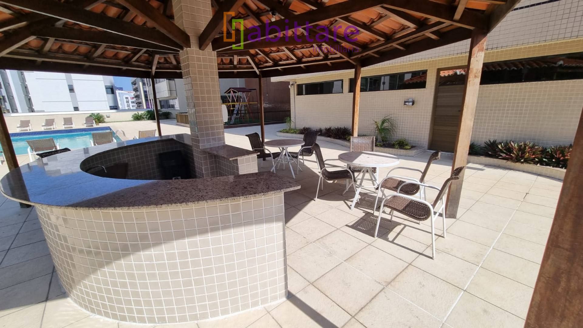 Prédio com 3 elevadores. Área de lazer com piscina, salão de festas e churrasqueira